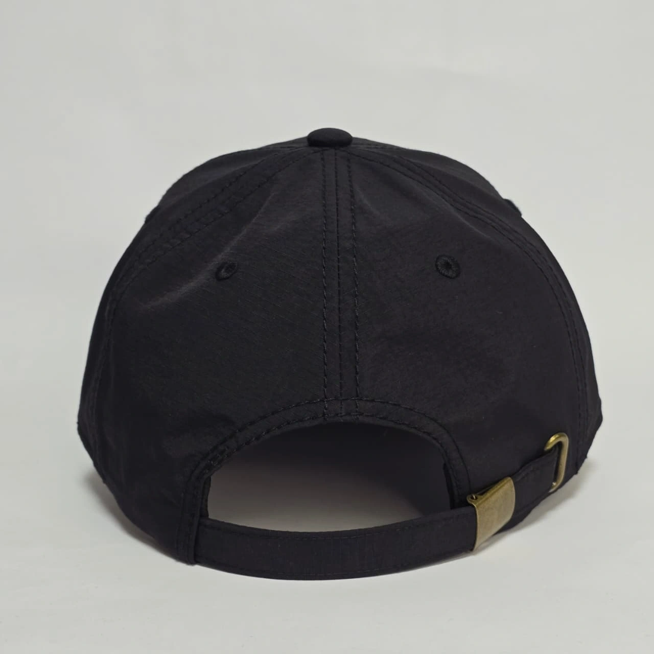 Design: A classic six-panel baseball cap with a long pre-curved brim and white contrast stitching.