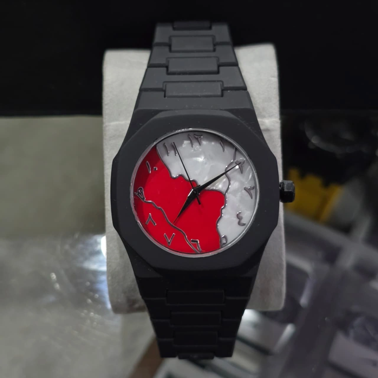 Arabic Aura Watch, a popular minimalist timepiece known for its distinctive dial featuring Arabic numerals and a marble-like or two-tone split design.