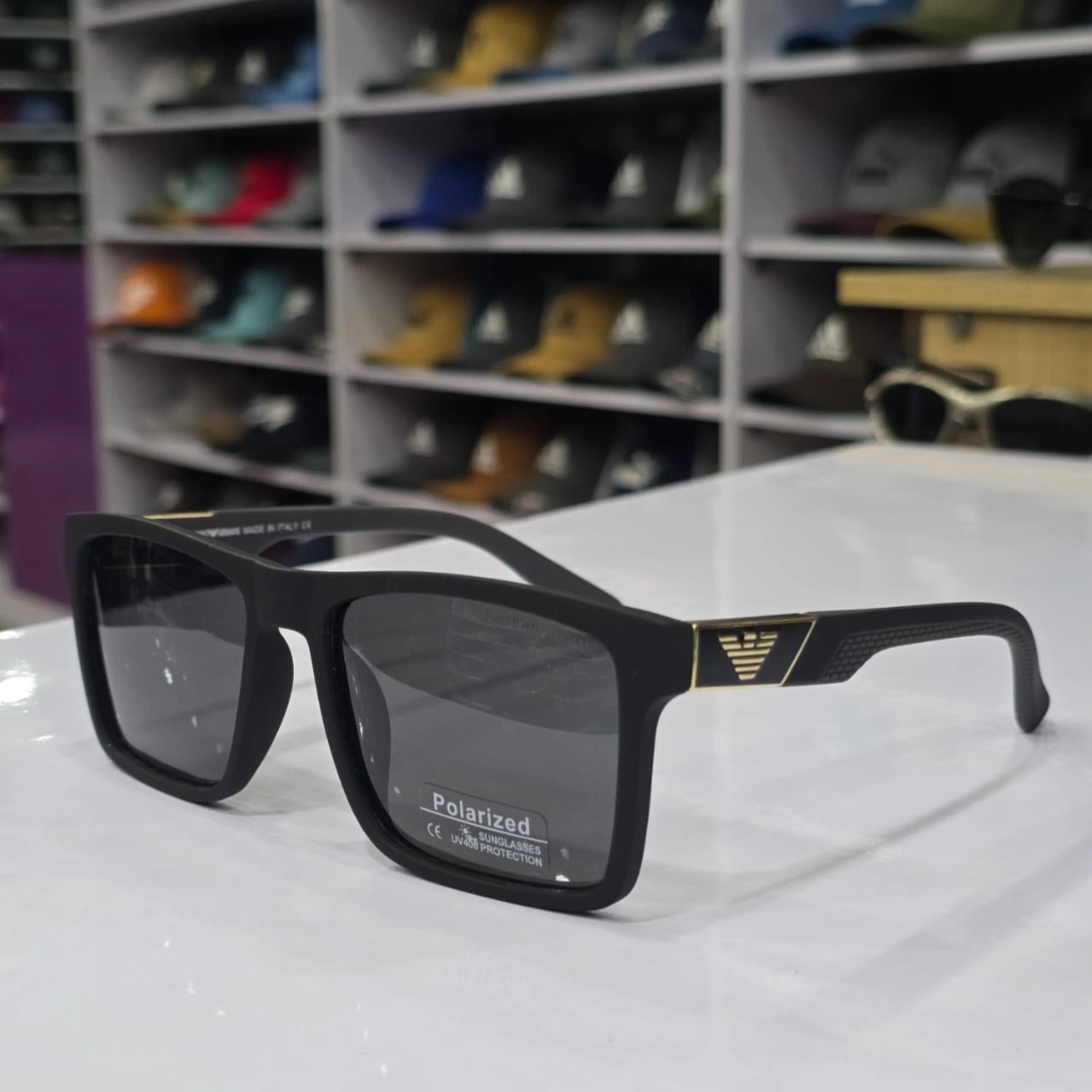 Design: These sunglasses feature a sleek, matte black square frame.