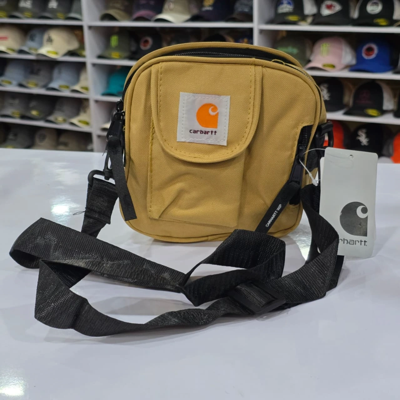 Carhartt WIP (Work In Progress) Small Essentials Bag, a compact and durable crossbody bag designed for daily use. It is part of Carhartt WIP's line that blends rugged workwear heritage with modern streetwear styles.