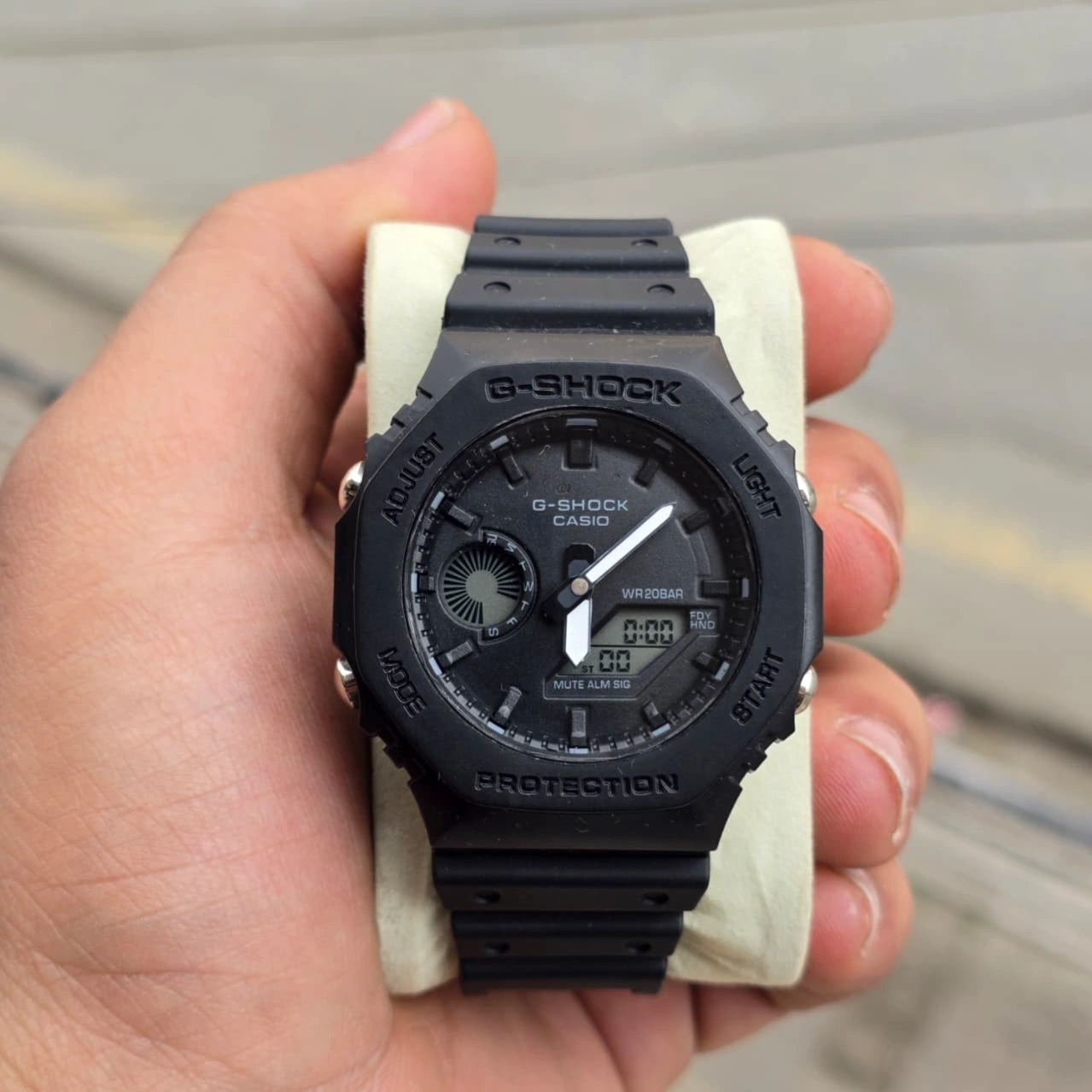 Casio G-Shock GA-2100-1A1DR, a popular analog-digital model often nicknamed the "CasiOak" due to its octagonal bezel that resembles the Audemars Piguet Royal Oak. This specific all-black (stealth) version belongs to the GA-2100 Series, known for being one of the thinnest G-Shock lines available.