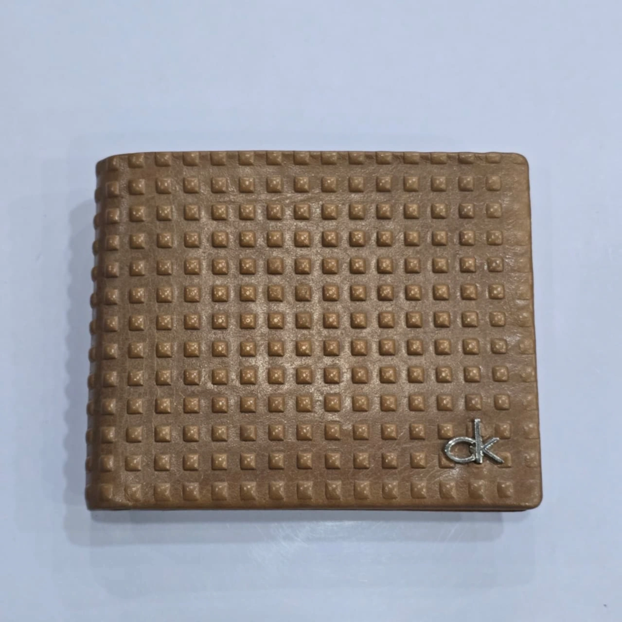 Design: A bi-fold (dual-fold) silhouette featuring a unique 3D studded or pebbled texture across the outer surface.