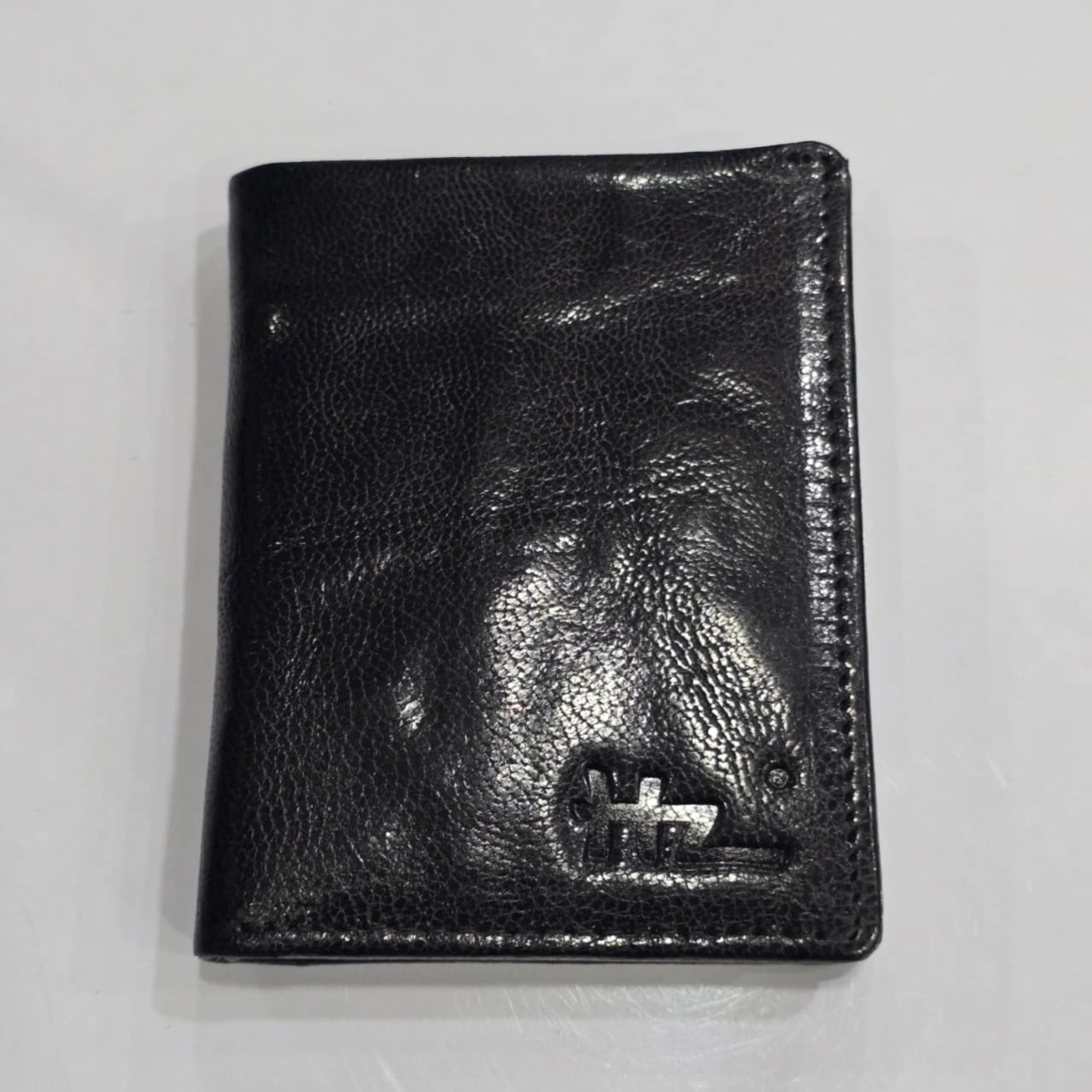 classic black bifold from the brand HZ (often referred to as HZ Premium or HZ Classic Fashion). It is a vertical-oriented design crafted from 100% genuine leather with a textured, pebbled finish.