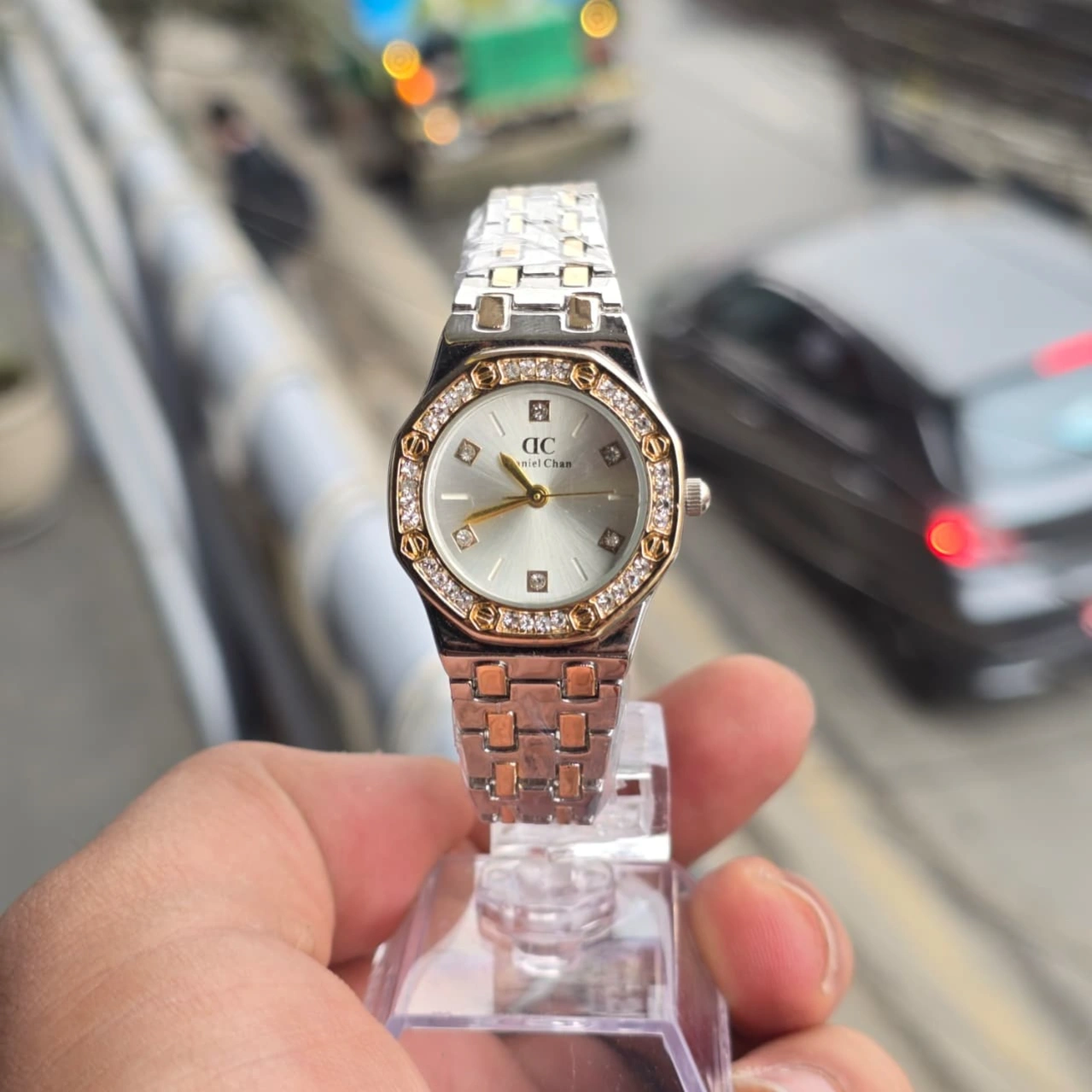 Daniel Chan Ladies Watch, a luxury-style timepiece that blends elegant aesthetics with reliable performance. It features an octagonal bezel encrusted with sparkling crystals and a dual-tone (silver and rose gold) stainless steel bracelet.