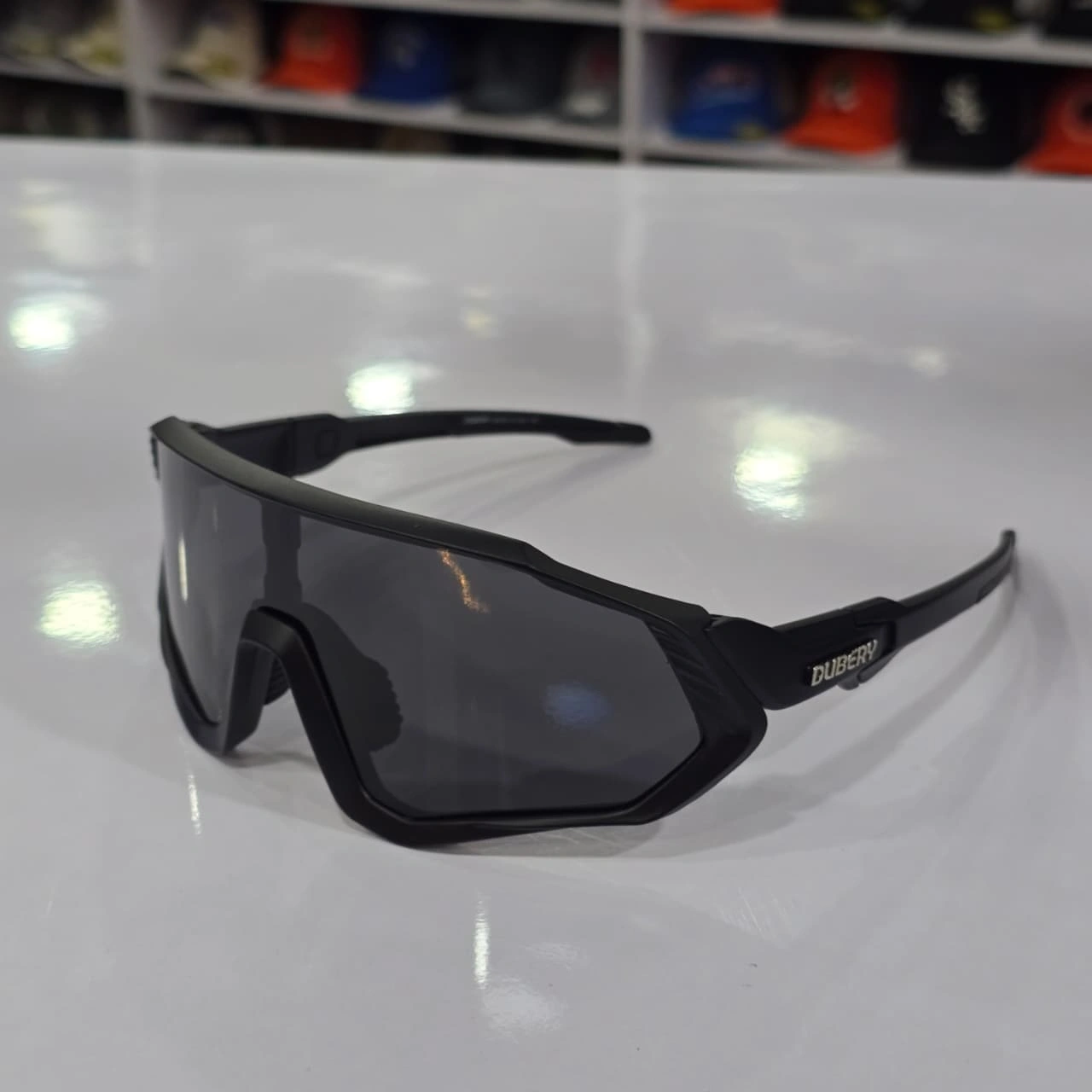 DUBERY polarized sporty sunglasses (specifically model D612), designed for high-intensity outdoor activities like cycling, baseball, and running. They are characterized by their oversized "shield" lens and a vibrant, multicolored graffiti-style frame.