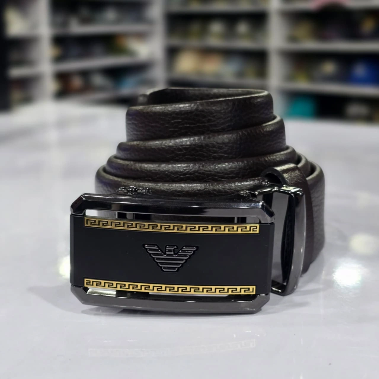 Emporio Armani Ratchet Belt, a sleek and contemporary accessory known for its "auto-lock" mechanism and signature branding.