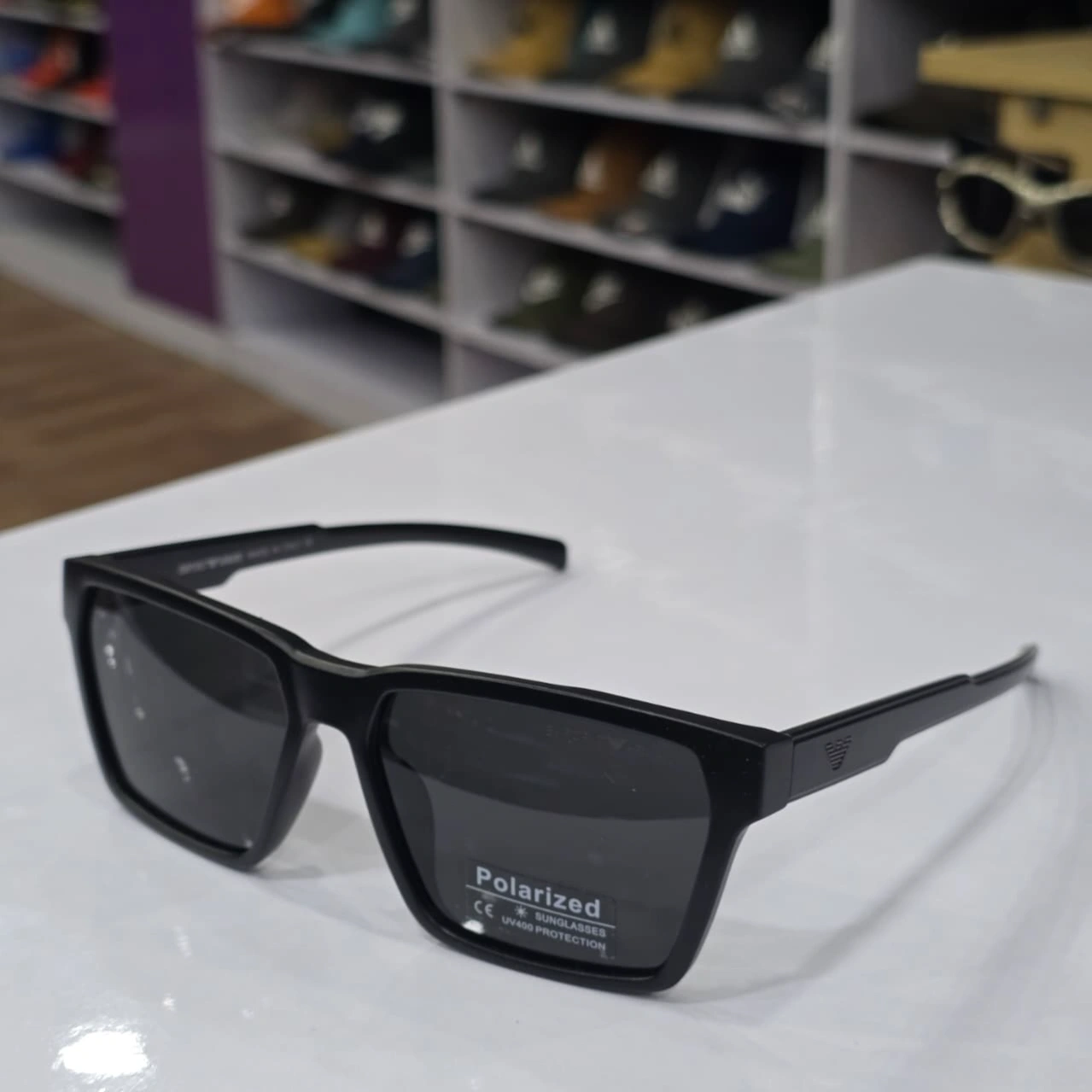Design: These sunglasses feature a sleek, matte black square frame.