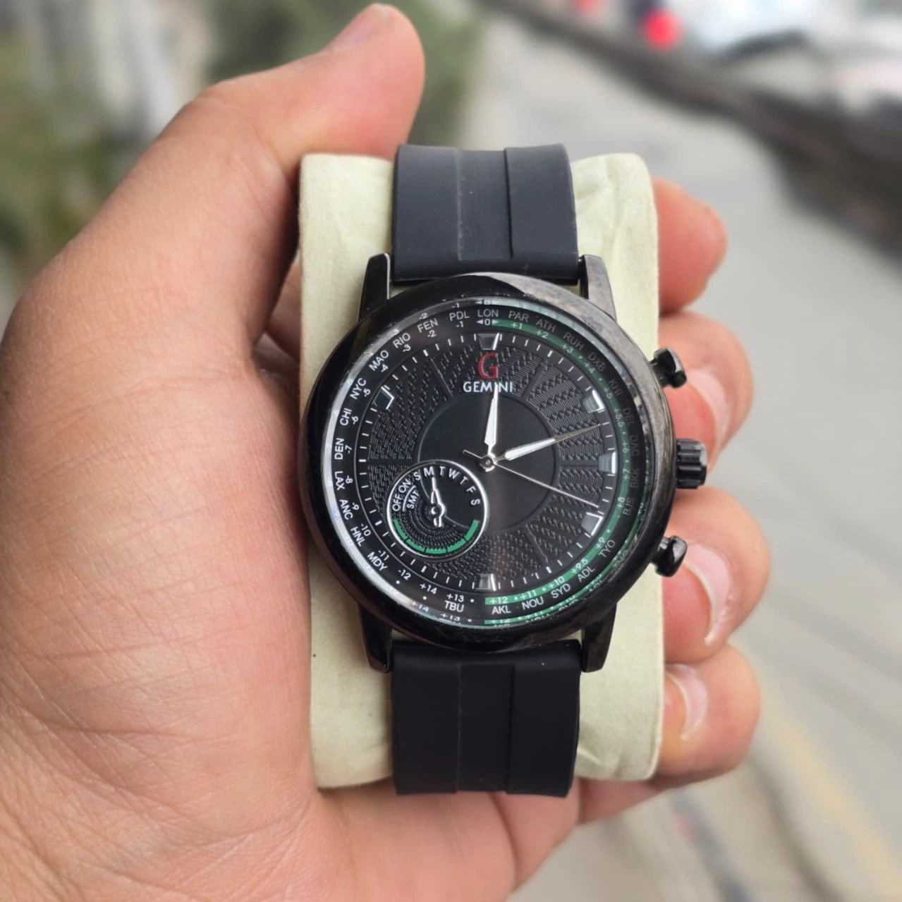 The Gemini World Time Quartz Watch is an affordable and stylish timepiece. It is known for its world time inner bezel and textured dial.