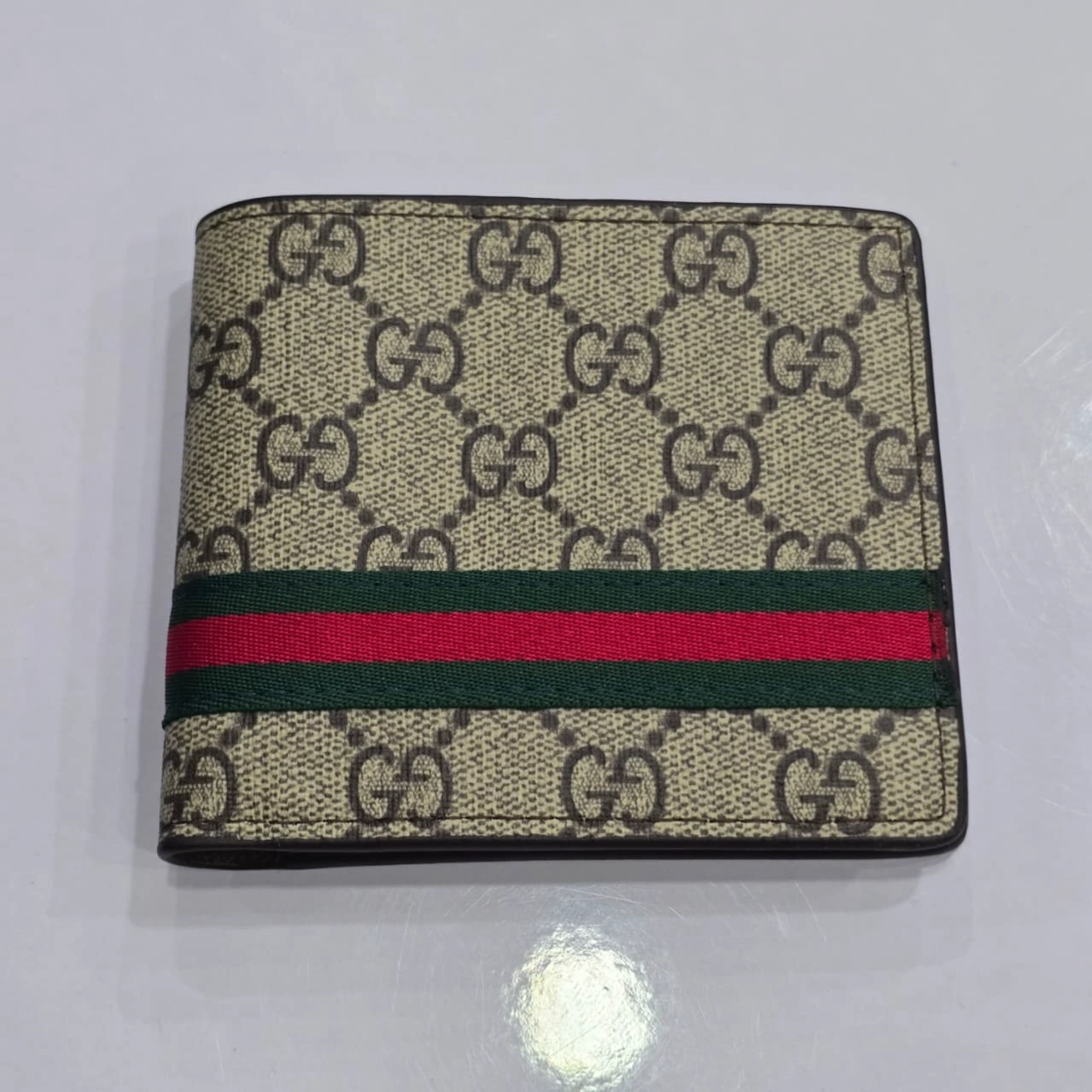Design: It prominently features the signature green and red Web stripe and a small Double G emblem, often in a light gold-toned finish.