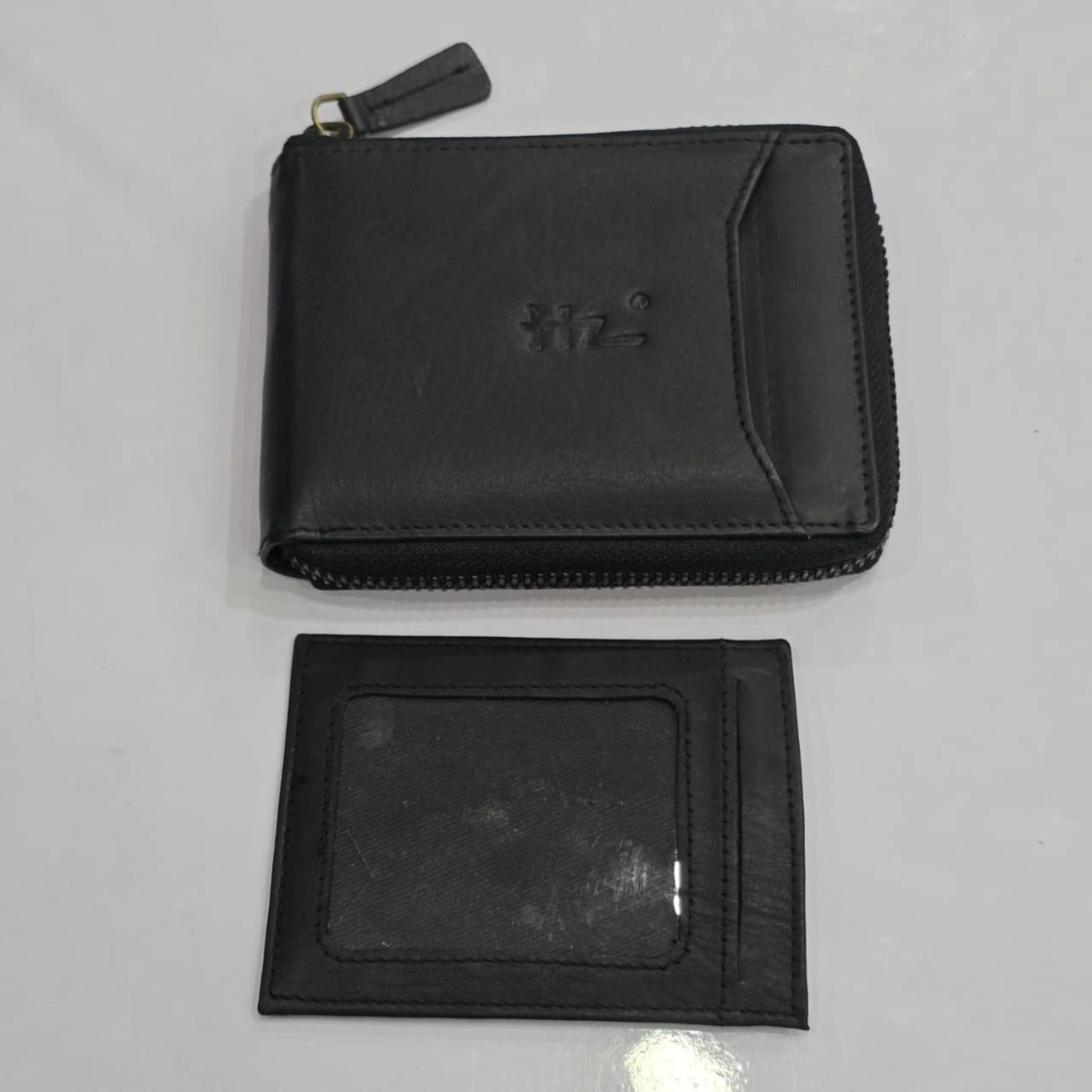 genuine leather zip-around bifold wallet and its detachable card holder from the brand HZ (often referred to as HZ Premium or HZ Classic Fashion).