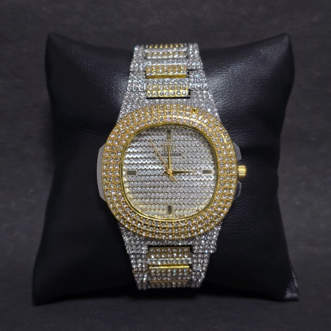 Design Style: Inspired by high-end luxury timepieces, this "iced-out" model features a brilliant, light-reflecting surface across the dial, bezel, and strap.