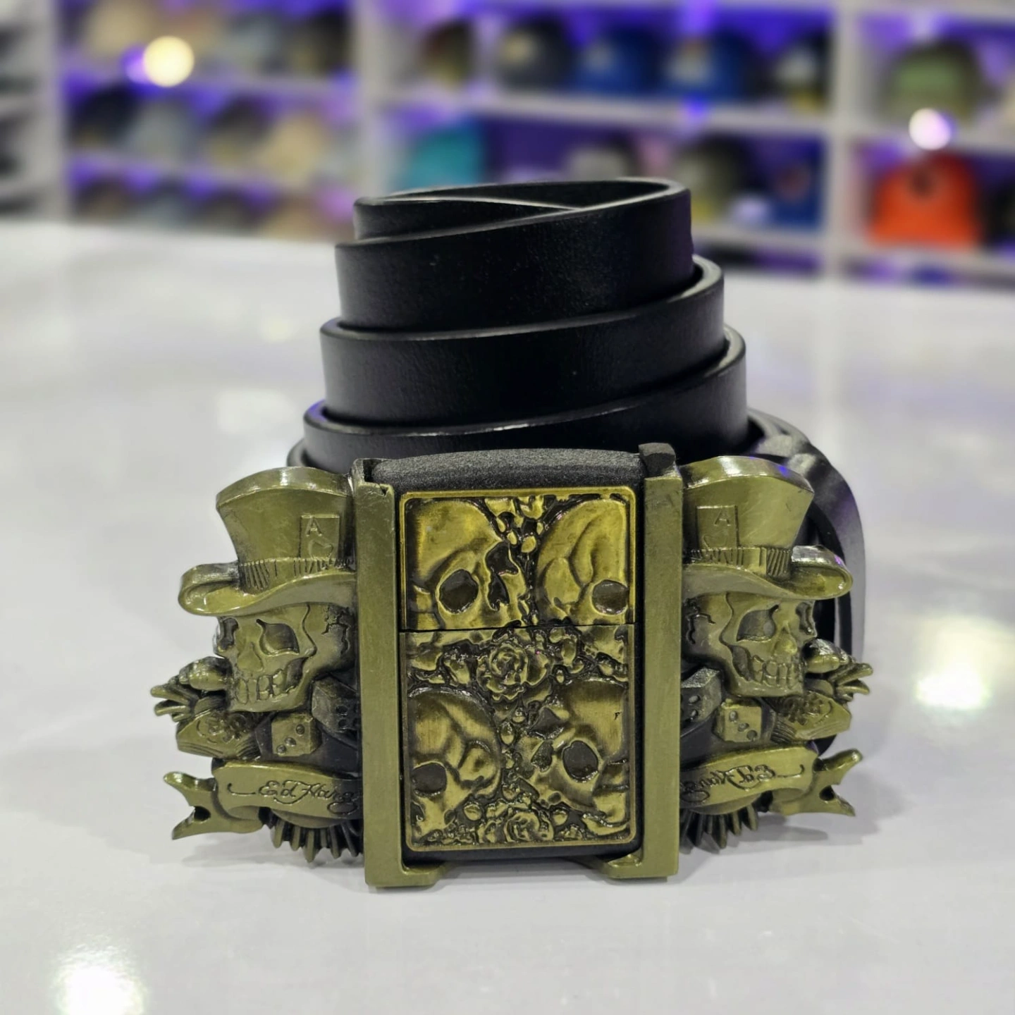 Built-in Lighter: The centerpiece is a functional, removable flip-top lighter. While the buckle is designed to appear as a solid unit, the lighter is discreetly nested in the middle.