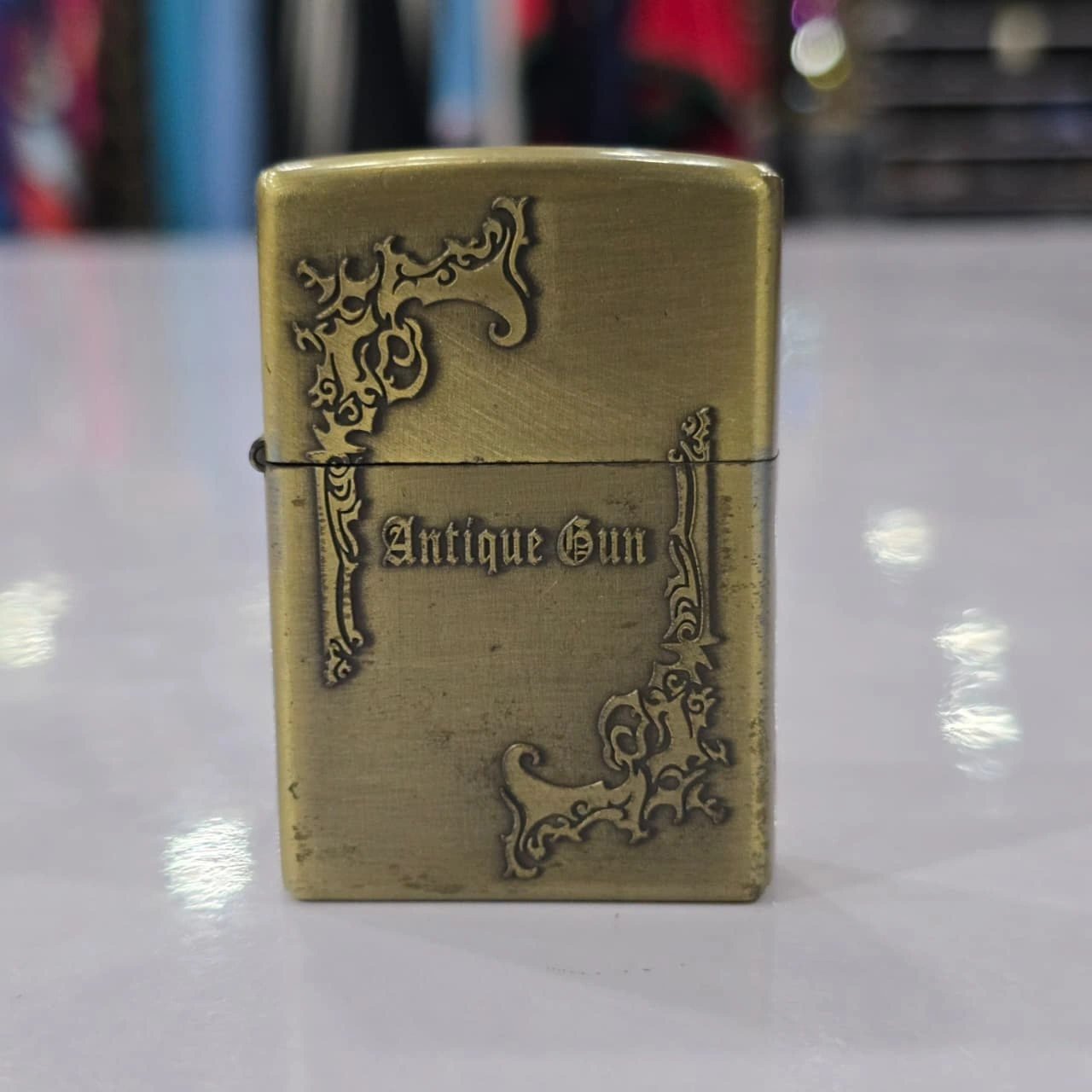 Metal Craft Gun Wheel Flame Lighter, a windproof Zippo-style lighter featuring a detailed 3D embossed gun design.