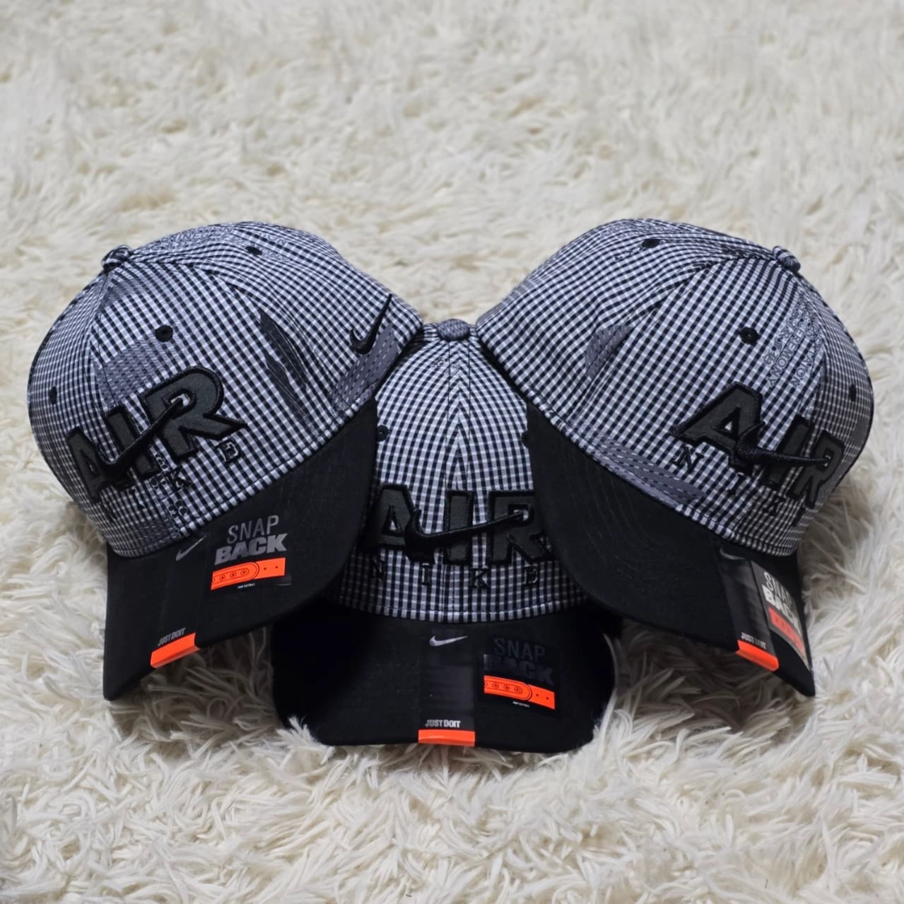 Nike Air Max Legacy 91 Gingham Mesh Caps. These hats are a modern take on classic sportswear, blending heritage patterns with contemporary performance details.