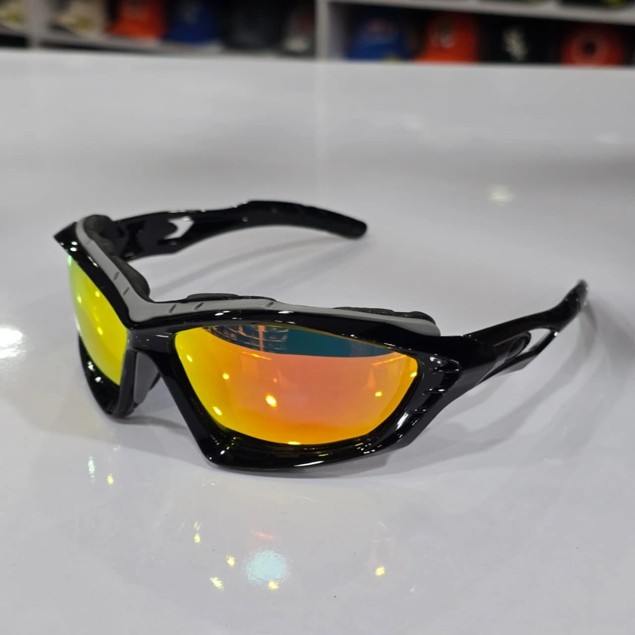 Frame: Lightweight, impact-resistant matte or gloss black plastic with an aerodynamic wraparound design for maximum coverage and stability.