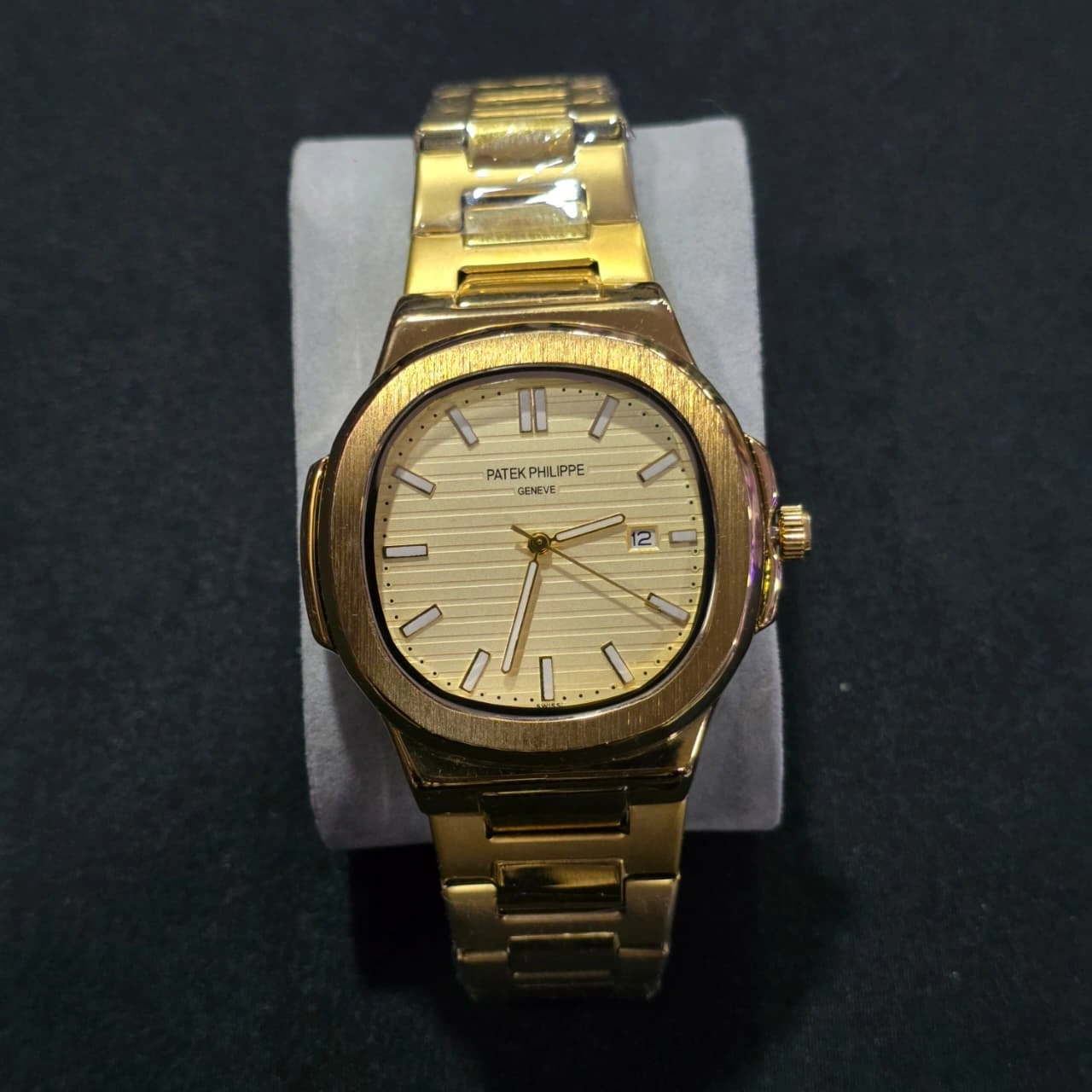 Patek Philippe Nautilus Full Gold, a luxury-style men's wristwatch featuring the iconic integrated-bracelet design. Given its appearance and typical market availability, this version is likely a high-quality quartz-movement model designed to emulate the authentic luxury original.