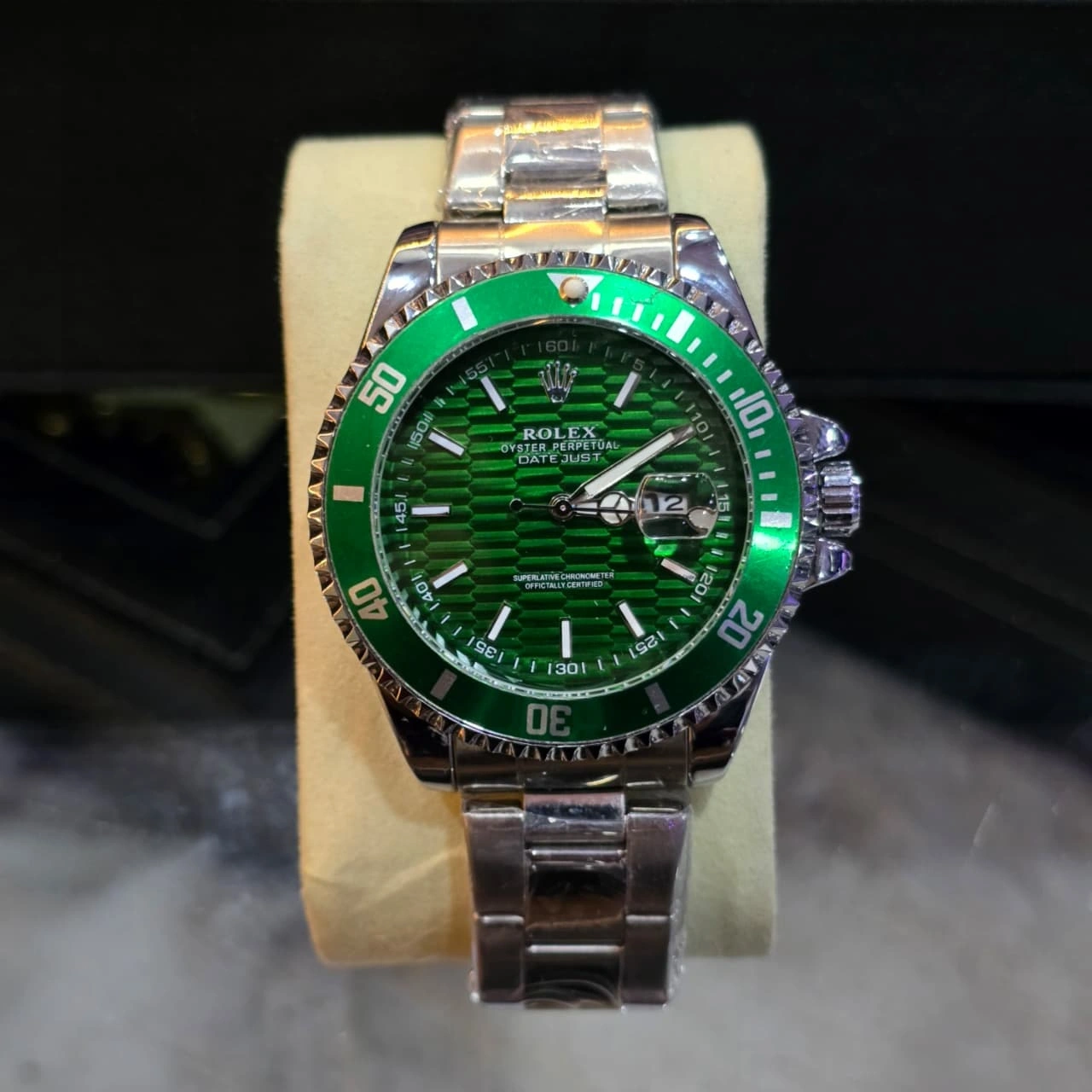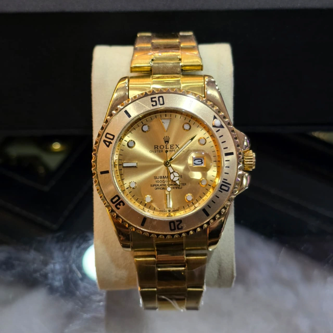 Rolex Submariner Date, a world-renowned luxury divers' watch known for its robust design and "Submariner" aesthetic.