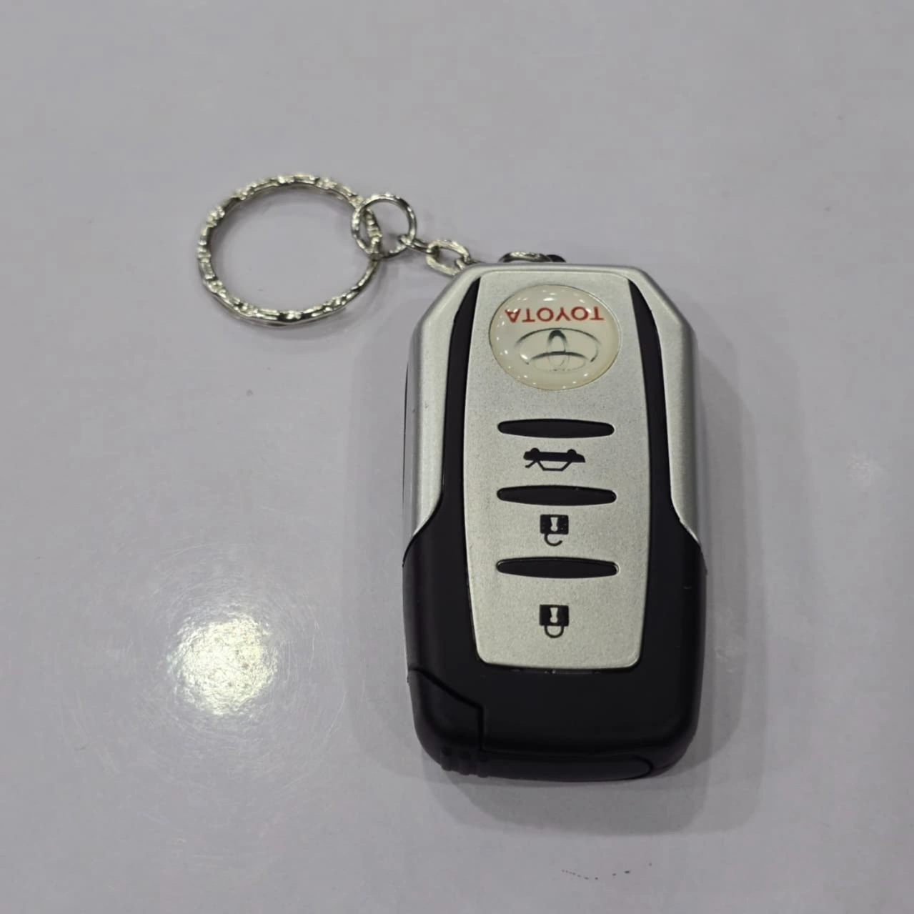 Toyota Car Key Refillable Lighter, a novelty windproof lighter designed to look like a modern vehicle remote. It is popular as a conversation piece and a practical keychain gadget.