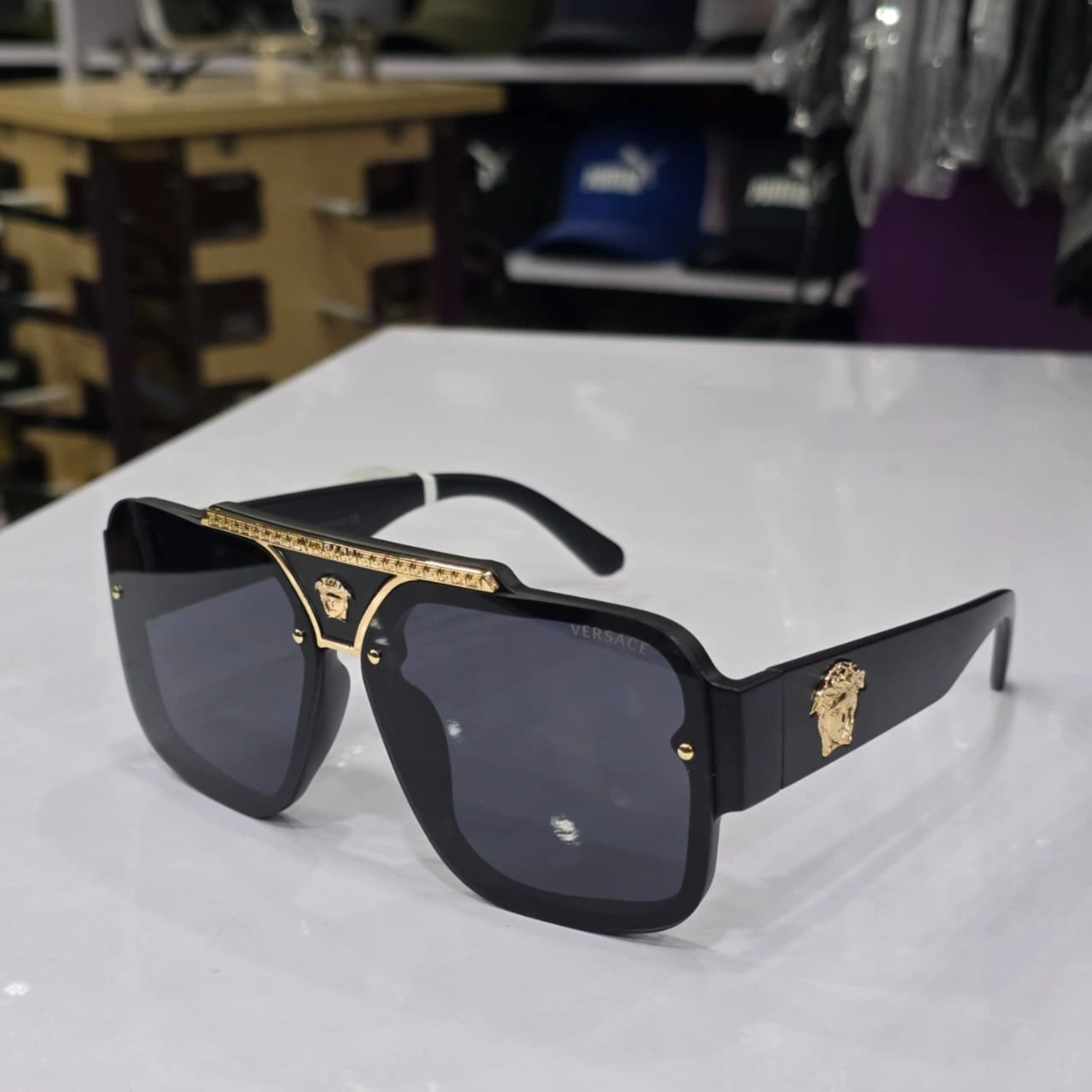 Versace Medusa Biggie (or Medusa Square-Frame) sunglasses. This style is inspired by 1990s hip-hop culture and is a mainstay in Versace's luxury eyewear collection.